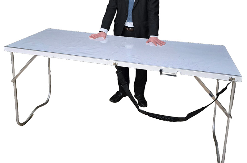 腰への負担を軽減した高さ設計になっており、格納タイプの指揮台です。